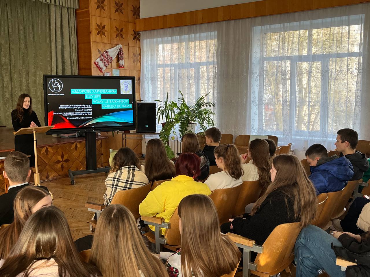 На запрошення Червоноградського ліцею 13 січня 2023 року була проведена лекція для учнів 9-10 класів на тему «Здорове харчування».