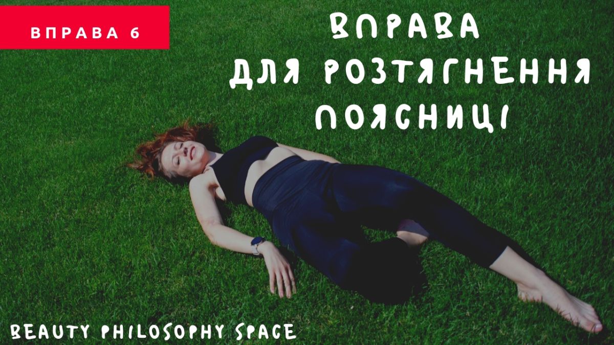 Вправа для розтягнення поясниці - бічне скручування лежачи. Вправа чудово знімає напругу з попереку, розтягує бічні м’язи корпусу, сприяє витягненню хребта. А також ця вправа при постійному виконанні - покращує поставу і зменшує болі в спині.