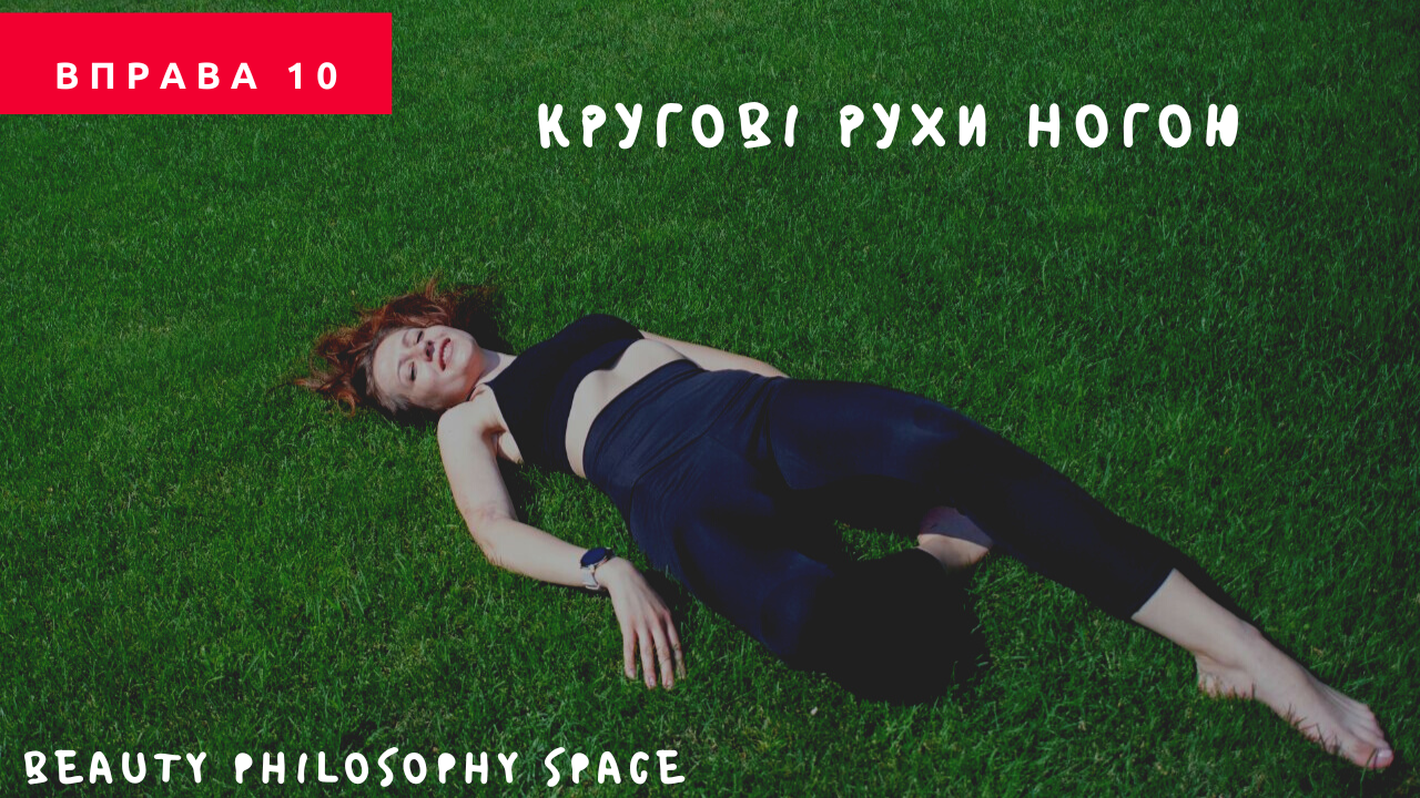 Вправа кругові рухи ногою спрямована на збільшення рухливості кульшових суглобів, розтягування підколінних сухожиль, розвиток сили м’язів ніг та живота.