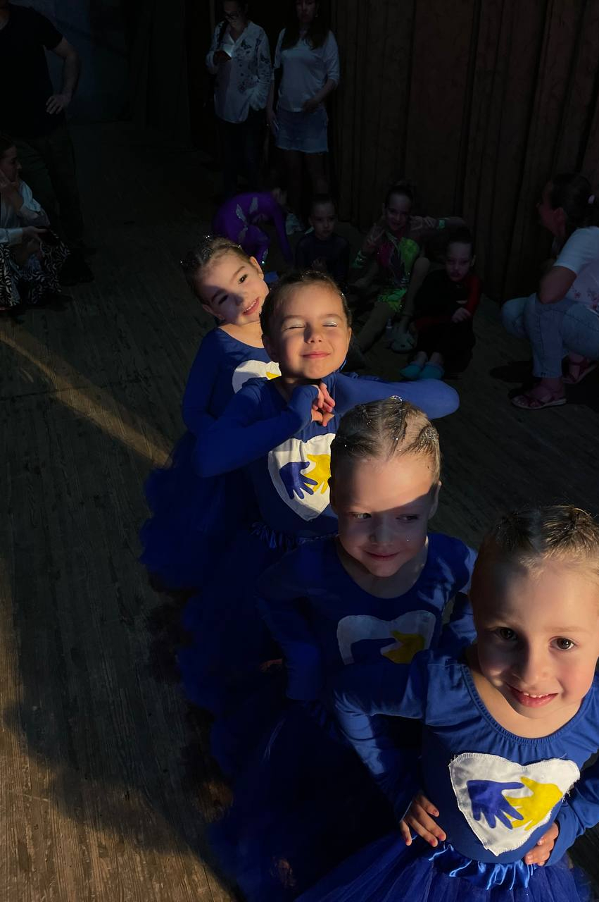 Коментар Яни: "З цими малюками я познайомилася, коли деяким було 3 або 3,5 рочки. Перший вихід на сцену стався через рік занять в нашому просторі. Перший страх сцени, вчитись стримувати свої сльози та істерики, через це всі пройшли діти, я, як викладач, і батьки.